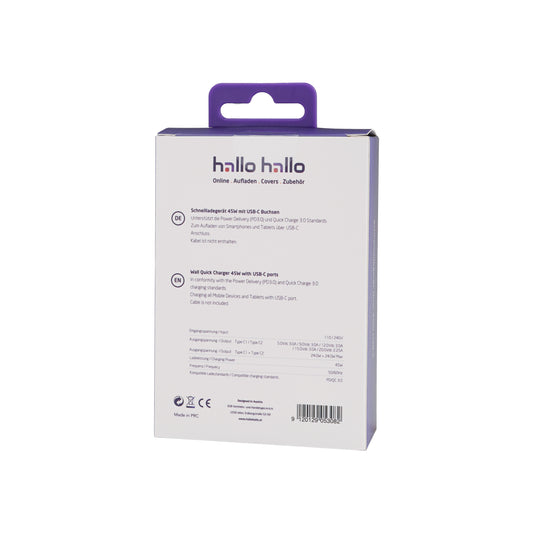 hallo hallo Universal Reiselader Dual USB-C 3A 45W